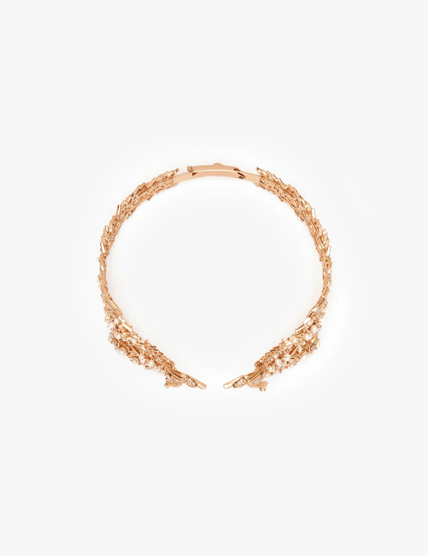 A luxury accessory par excellence, the Lophorina Open Choker is a flamboyant expression of adoration. The architectural design allows the opulent piece to be open into two hinged halves decorated with carefully handpicked luminous crystals. The two birds perched, as heads on the jewel are representative of the admiration and love of the modern day Outhouse Bride. Trellis shaped carvings intensely exotic display tenderness and reflects the soul of Outhouse Jewellery.