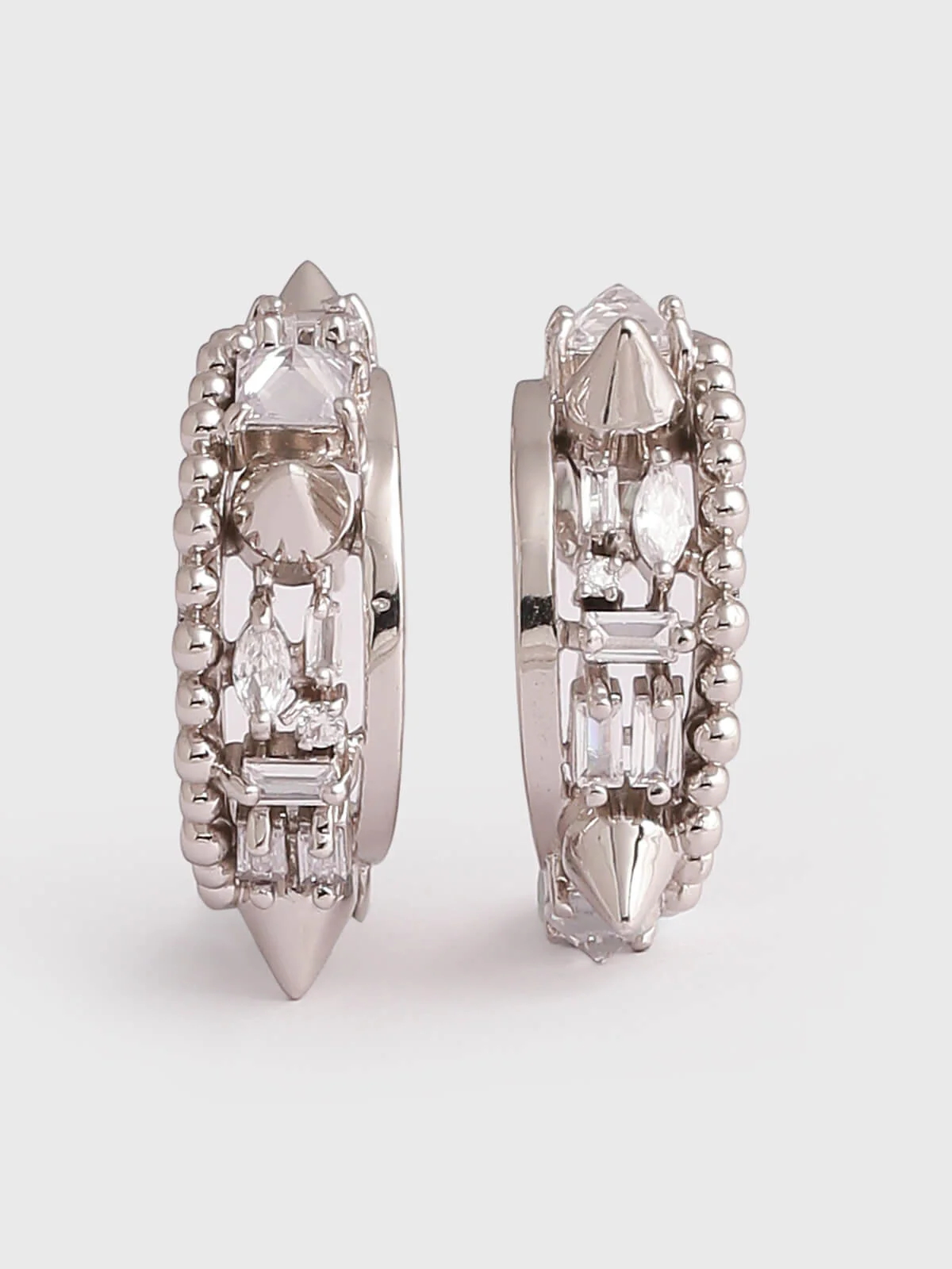 The archway gives way for a subtle yet bold accent: an intricate contemporary jewellery design with tiny spikes against glittering Crystals. Pair with the Crescent Pendant or let it speak for itself.